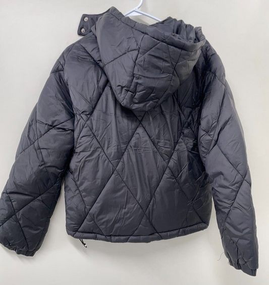 Pretty Little Thing Womens 8 Diamond Quilted Hooded Puffer Jacket Black Nylon