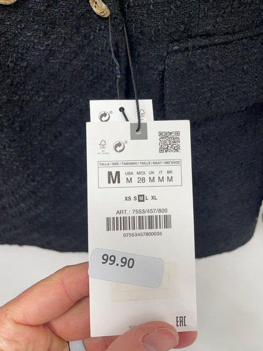 Zara Womens M Black Textured Double Breasted Blazer 7553/457 Jacket Tweed Weave