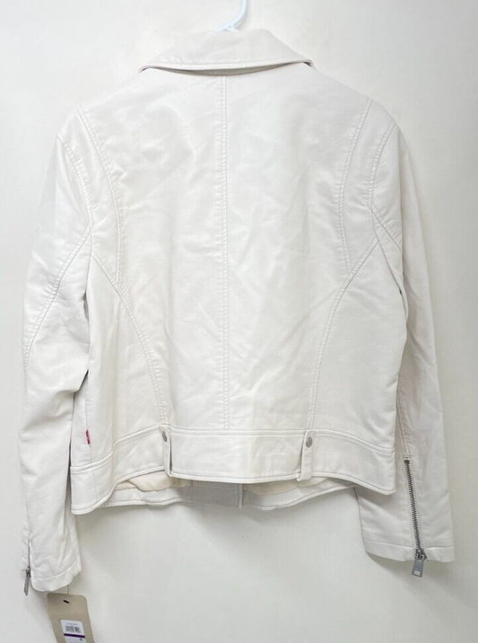 Levis Womens 2XL Faux-Leather Contemporary Motorcycle Jacket Ivory LW2MU638