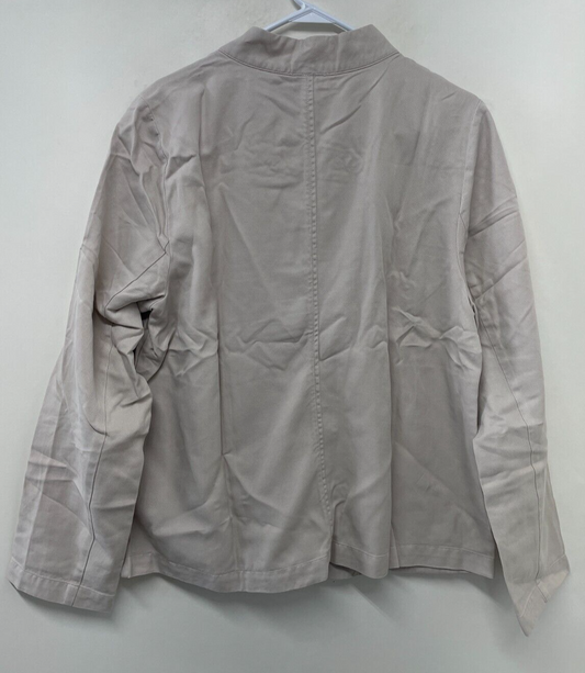 J Jill Womens L Draped-Front Jacket Beige Cotton Button Up Long Sleeve 273061