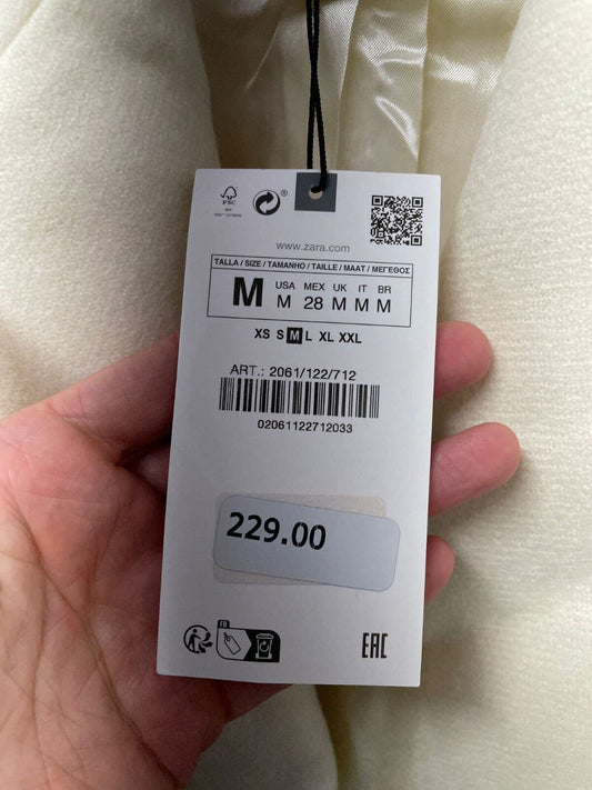 Zara Womens M Premium Wool Blend Double Breated Coat 2061/122/712 Ecru Ivory