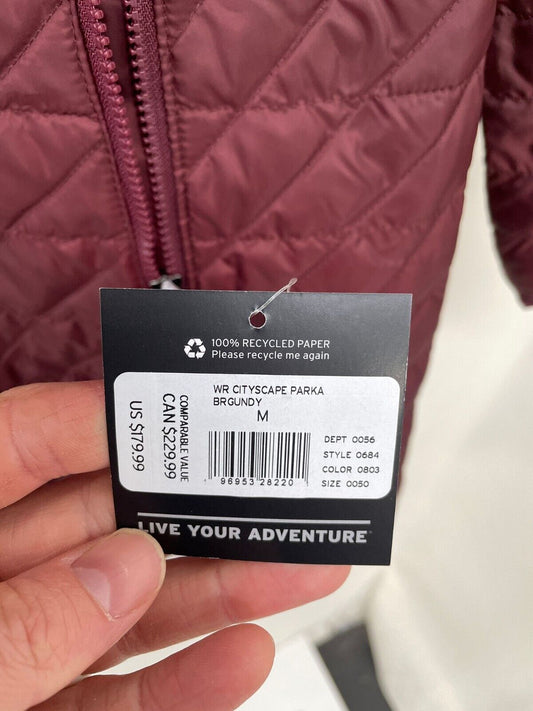 Eddie Bauer Womens M Cityscape Down Parka Quilted Jacket Burgundy 0684