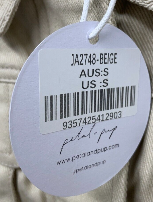 Petal & Pup Women's S Cropped Jacket Beige JA2748 Denim Jean Boxy Fit NWT