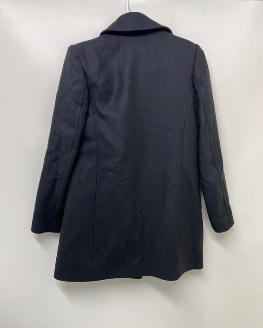 Mango Womens XS Abrigo Pinocho Short Coat Black Double Breasted Wool Blend MNG