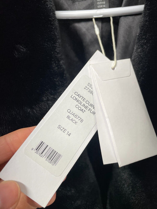 Forever New Women's 14 Cayte Curvy Longline Faux Fur Coat Black Plush