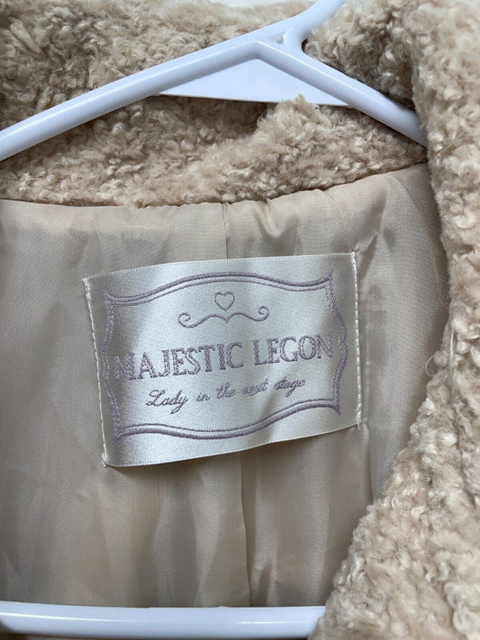 Majestic Legon Women's M Deep Pile Sherpa Moto Jacket Beige Fleece Full Zip NEW