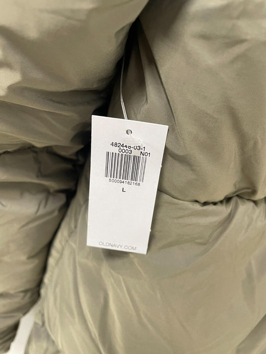 Old Navy Women's L Water-Resistant Hooded Puffer Jacket Washed Olive Relaxed NWT