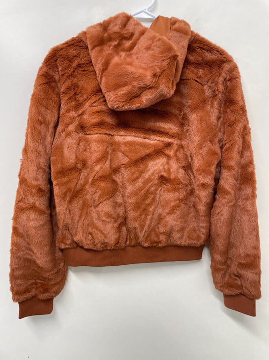Reflex Womens M Faux Fur Hood Zip Up Jacket Burnout Orange Banded Bomber JK945
