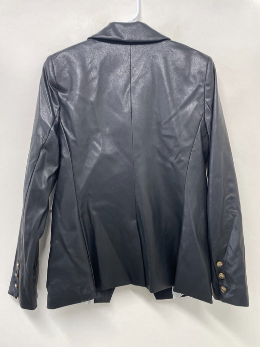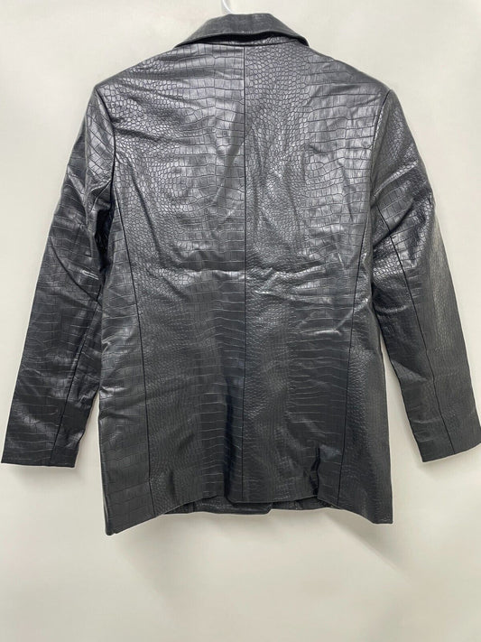 Forever 21 Womens XS Faux Leather Double-Breasted Embossed Blazer Jacket Black