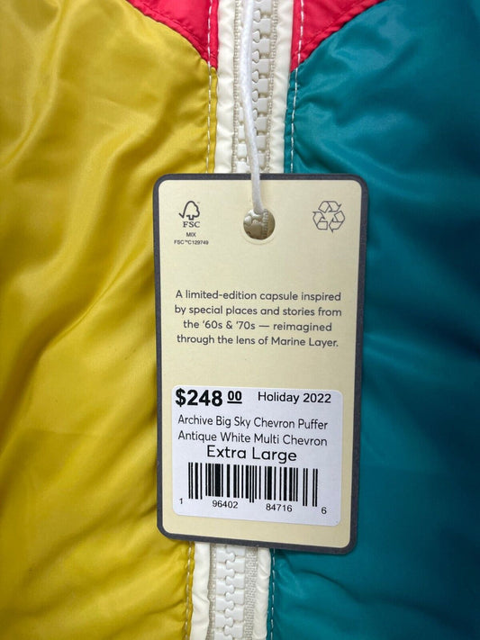 Marine Layer Womens XL Archive Big Sky Chevron Puffer Down Jacket Antique White