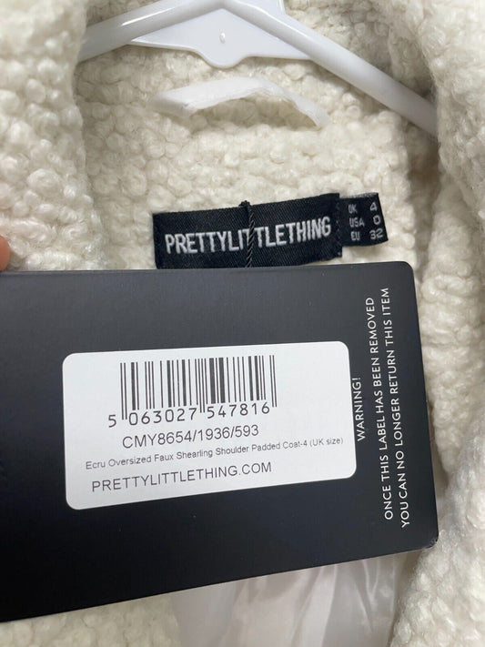 PrettyLittleThing Women's XS Oversized Faux Shearling Shoulder Padded Coat Ecru