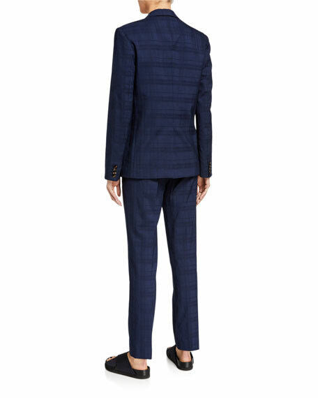 CO Womens XS Blue Navy Check Wool & Silk Blazer Sport Coat Jacket