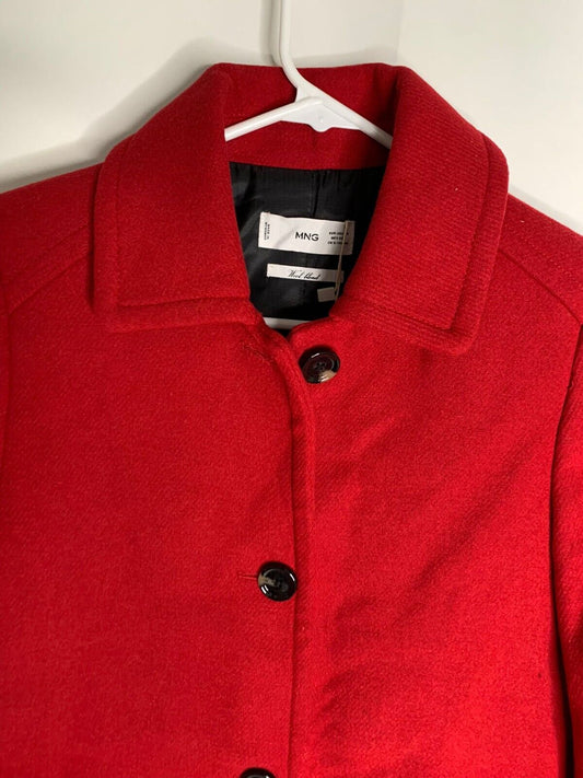 MNG Mango Womens XS Knitted Longline Coat Wool Blend Overcoat Red