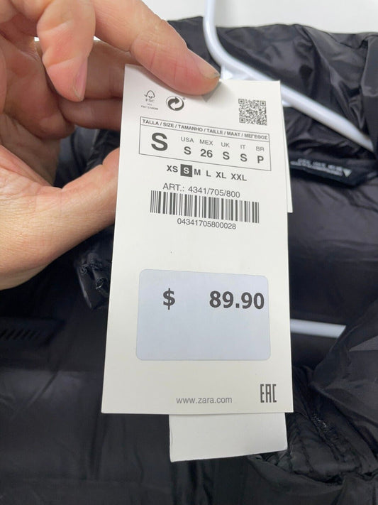 Zara Womens Packable Quilted Coat Long Jacket Puffer Zip Up Black 4341/705/800