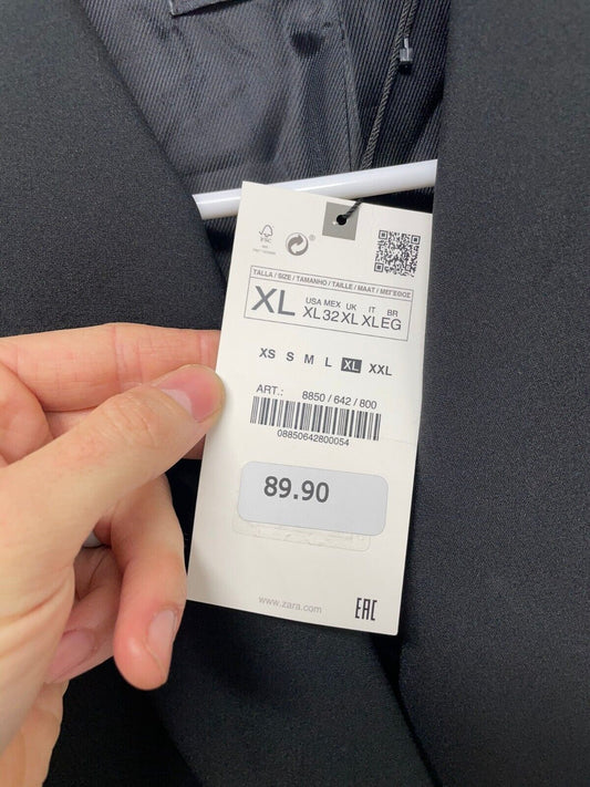 Zara Women's XL Tailored Blazer with Buttons Black Stretchy Shoulder Pads NWT