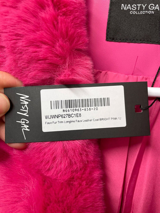 Nasty Gal Womens 8 Faux Leather Longline Coat Bright Pink Hot Barbie Core Jacket