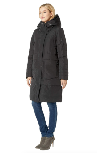 Andrew Marc Womens XL Black Silver Reversible Down Pillow Parka Puffer Coat