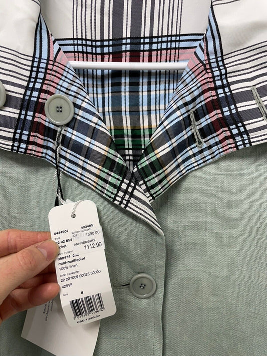 Akris Punto Womens 8 Reversible Linen Jacket Mint Green Plaid Blazer