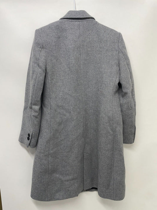 ZARA Womens L Wool Blend Fitted Coat Grey Collared Side Slash Pockets 7322/386