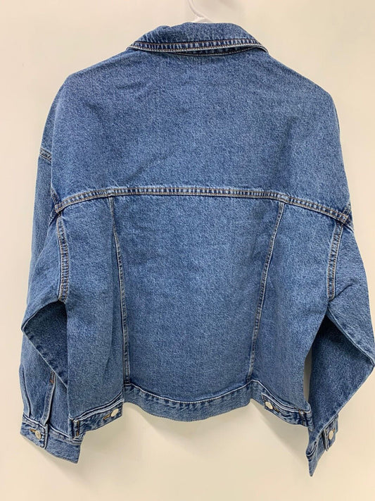 Pull & Bear Womens L Denim Trucker Jacket Button Down Jean Medium Wash