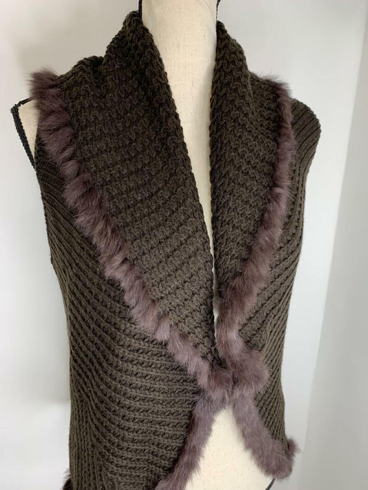 Love Token Womens S Brown Enzo Genuine Rabbit Fur Sweater Knit Vest