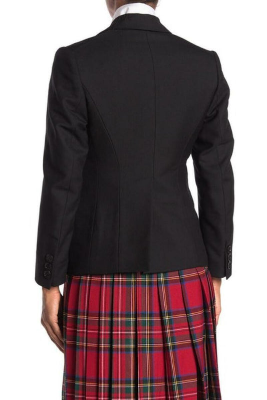 Burberry Womens 4 Black Peak Lapel Wool Blend Blazer Jacket Military Officer