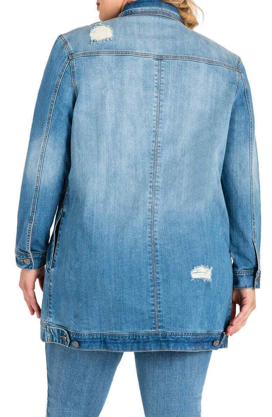 standards & practices Womens 1X Electric Light Blue Margot Longline Denim Jacket