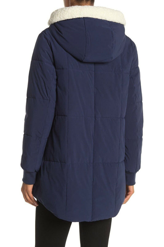 Marc New York Womens S Navy Faux Shearling Lined Hooded Puffer Coat Jacket NWT