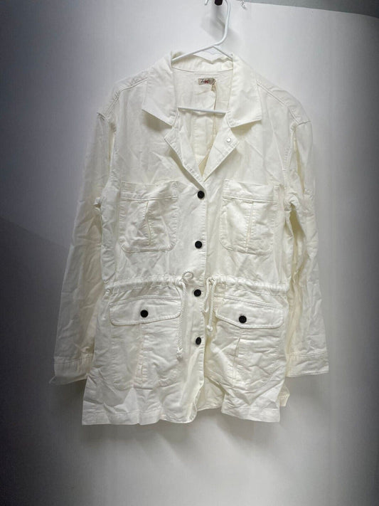 Faherty Womens M Larkspur Jacket Blazer Cotton Linen White Button Down Cargo