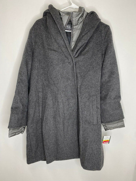 Gallery Womens M Hooded Wool Blend Over Coat with Quilted Bib Grey Melange