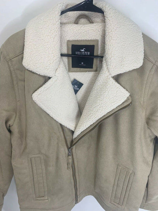 Hollister Womens M Beige Faux Shearling Cozy Biker Jacket Moto Sherpa