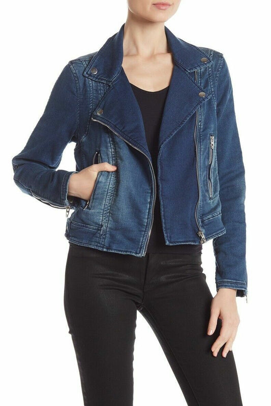 BlankNYC Womens S Denim Blue Hello Moto Jean Jacket Motorcycle Distressed
