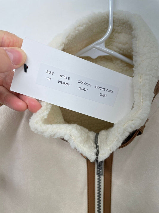 Violet Romance Womens 10 Suedette Jacket with Sherpa Borg Sleeves ASOS Ecru