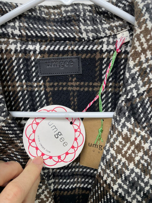 Umgee Womens S Button Up Woven Trench Coat Black Coffee Plaid Long Overcoat Over
