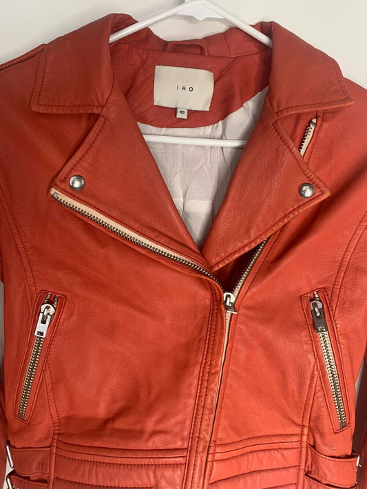 Iro Womens 40 Orange Zefir Lamb Leather Crop Motorcycle Jacket Moto Salmon