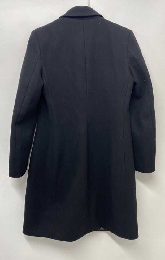 ZARA Womens M Fitted Pea Coat With Shoulder Pads Black Double Button V-Neck