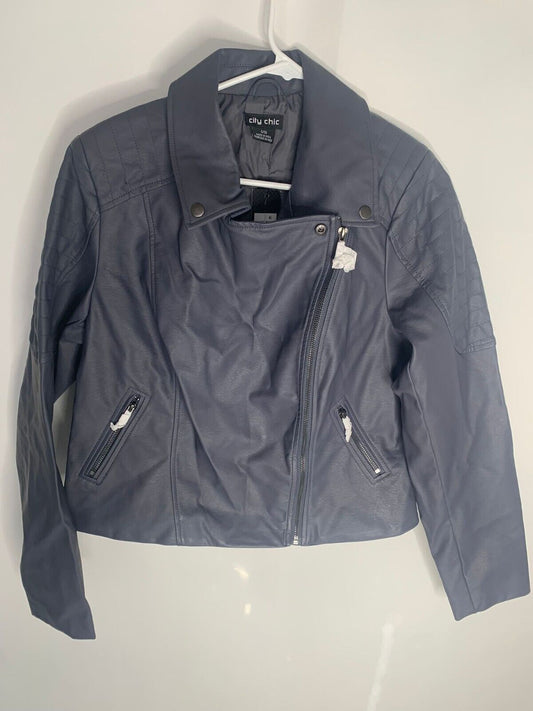 City Chic Womens S/16 Smoke Gray Zip Biker Motorcycle Jacket Faux Leather