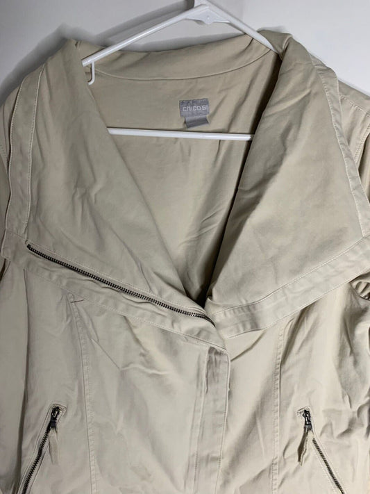 Chico's Womens 2 Stone Cream Motorcycle Zip Up Jacket Moto 570326612