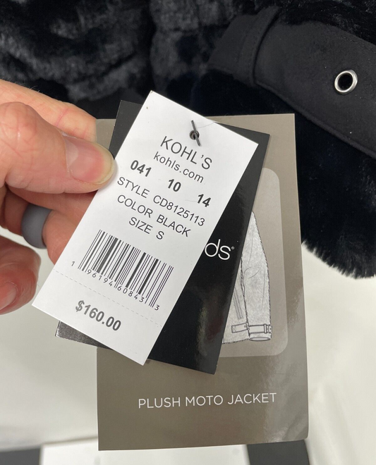 Cuddl Duds Women's S Plush Moto Jacket Black Full Zip Relaxed Fit CD8125113 NWT