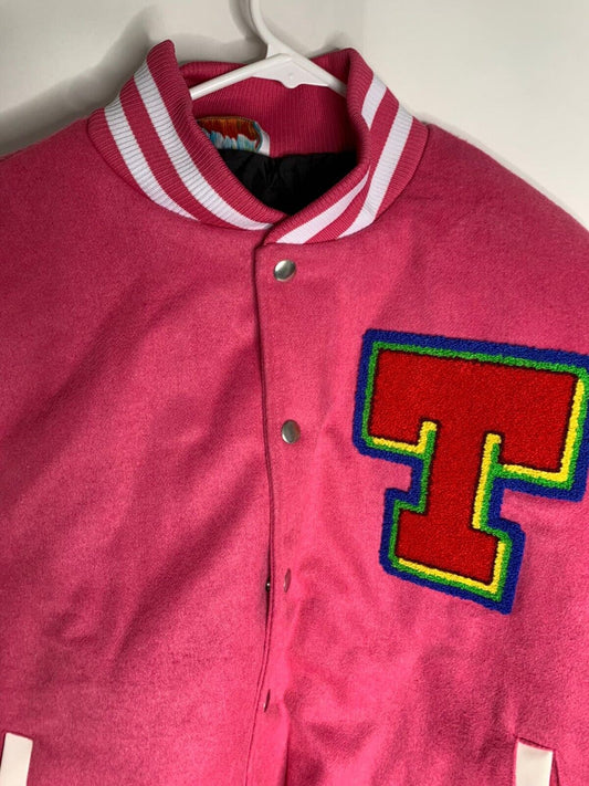 Twiley Womens L Pink Varsity Letterman Jacket Snap Button Felted Quilted