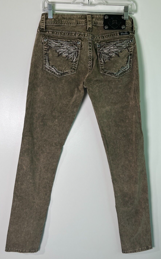 Miss Me Women 28 Low-Rise Stretch Acid Wash Skinny Pant Jeans Olive TP5724S1