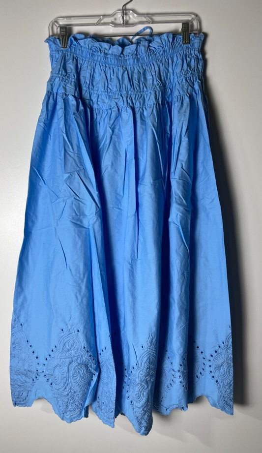 Anthropologie Moon River Women's M Smocked Waist Eyelet Midi Skirt Sky Blue
