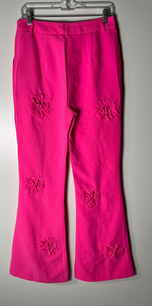 Catchall Women's L Modern Floral Appliqué High Rise Straight Leg Pants Hot Pink