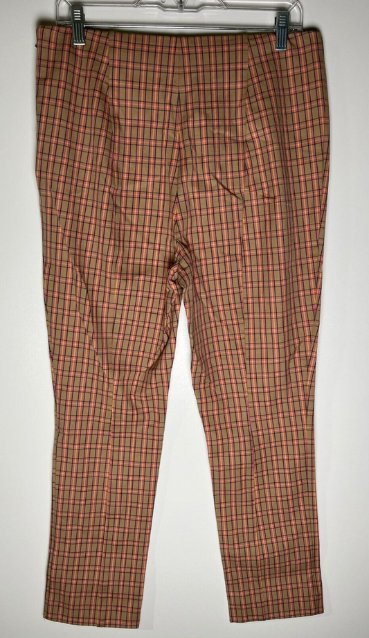 Anthropologie Womens US 10 The Essential Slim Pink and Tan Plaid Pant