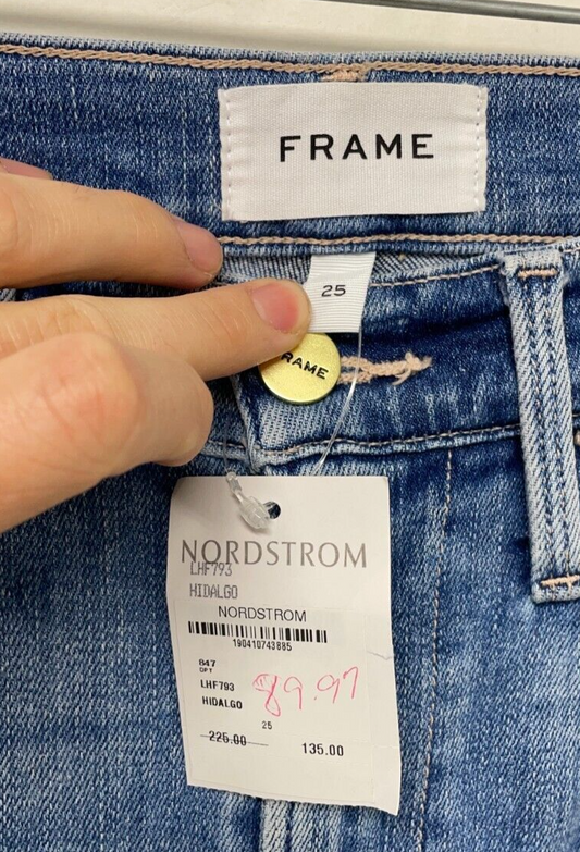 FRAME Denim Women's 25 Le High Flare Jeans Hidalgo Blue Super Stretch LHF793