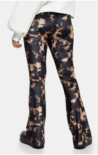 Topshop Womens Petite Bleach Black Tie Dye Velvet Flare Trousers Pants