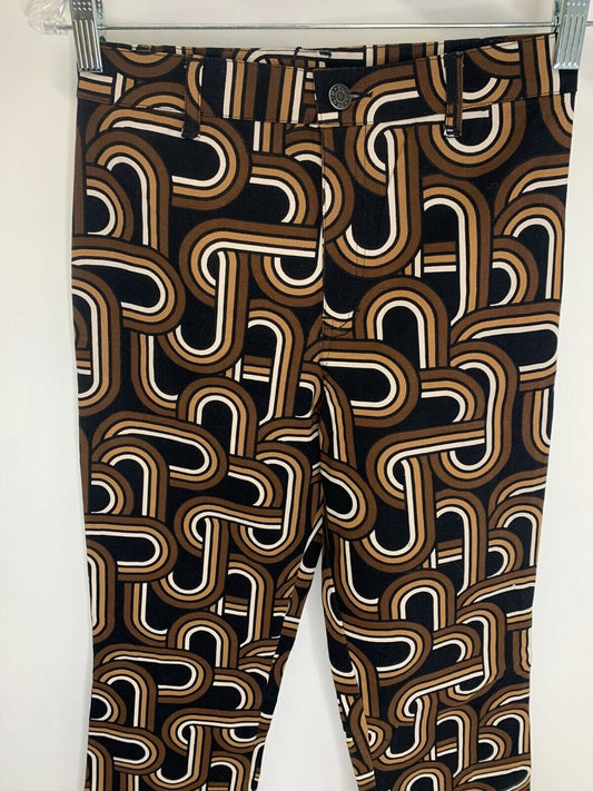 Motel Womens XS Zoven Trouser Flare Pants Canvas Denim Tonal Interlink Black