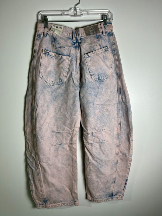Free People We The Free Women's 26 Good Luck Mid-Rise Barrel Jeans Pastel Pink