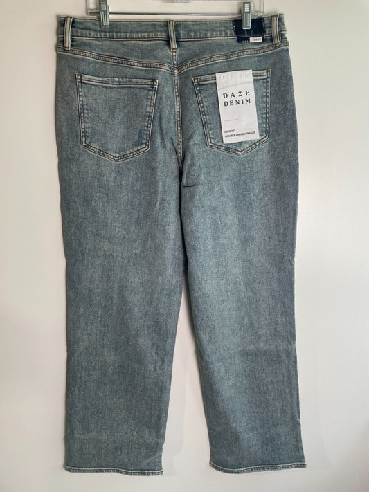 Daze Denim Womens 29 Sundaze High Rise Dad Jean Blue Distressed Straight Leg