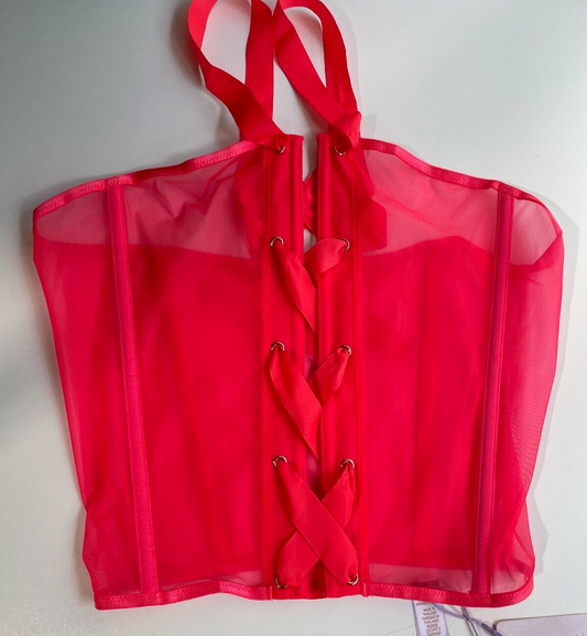 Savage X Fenty Womens M Sheer X Open Lace-Up Back Mini Skirt Red Pink LI2253475